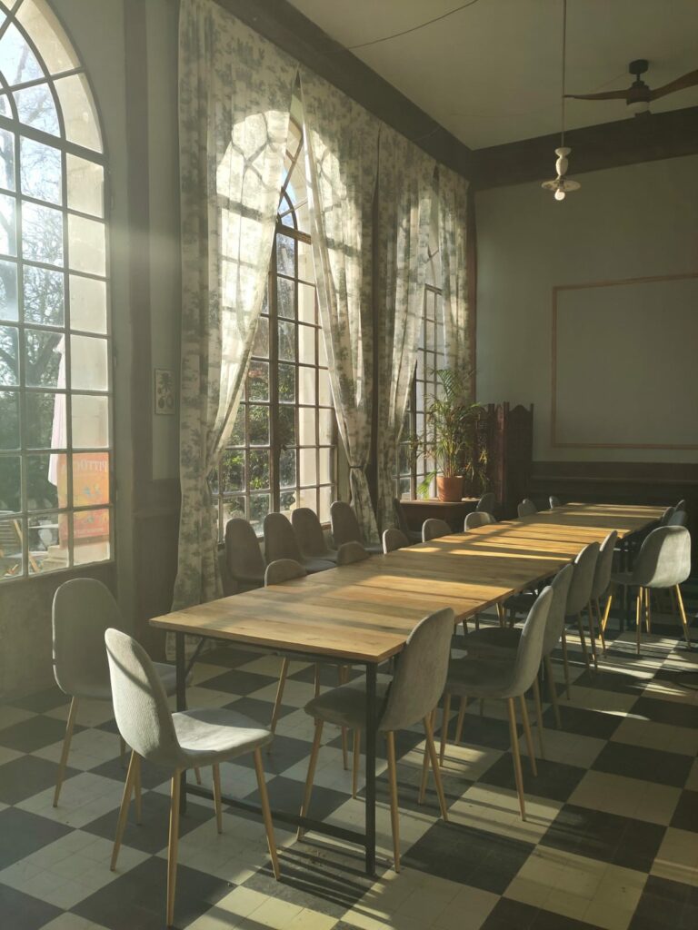 - une splendide orangerie de 60 m² pouvant accueillir 20-25 personnes en mode réunion et 40 en mode conférence. Elle est louée avec une cuisine bar, le matériel de vidéo projection, et tout une série de mobilier pour adapter l’espace à vos attentes.